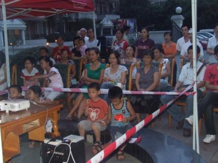晚上6:30,在物业服务中心的张罗下,各小区开始摆起了“坝坝电视”,业主们吃着零时,摇者蒲扇,共迎奥运盛典。小区李大爷高兴的说:“老两口在家看奥运不热闹,就是要大家一起看才有气氛,感谢物业公司的精心组织。”
