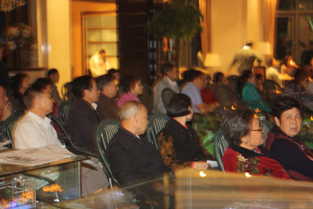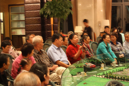 龙湾售楼中心内,几名可爱的小朋友跟随家人来到活动现场,融入到老年人的节日氛围中。在主持人张伟的引导下,场内所有小朋友齐声祝愿爷爷奶奶们节日快乐、身体健康,让老年朋友感动不已。