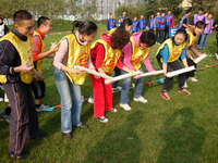 几个热身小游戏拉开了本次趣味运动会的帷幕。在引导员的指导下,一百多名员工放松身体,为接下来的游戏做准备。随后,抢滩登陆,水到渠成,蛟龙出海,袋鼠运瓜四个趣味无穷的运动在众人的期盼中开始了。互相搀扶一起攻克游戏的难关;相互鼓励,呐喊加油带动团队的气势;围在一起讨论“克敌制胜”的方法……好不热闹。龙湖人的热情,龙湖人的团队合作精神和志存高远,龙湖人坚韧踏实的气质,在整个活动中精彩上演,勇往直前,欢乐无限。