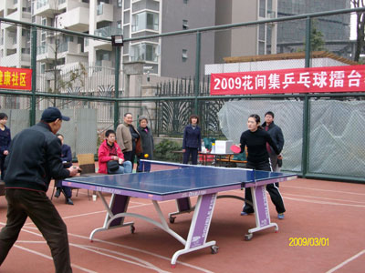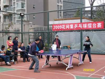 2009年2月21日“花间集乒乓球擂台赛”的淘汰赛如期举行,太阳公公害羞的躲了起来,天空下起了淅淅沥沥的春雨,我们的比赛场地也受到了影响,由室外转到了地下室,但丝毫没有影响到运动员们的比赛热情。瞧!参赛的小选手摩拳擦掌,跃跃欲试,表现得非常自信,毫不逊色给大人,经过激烈角逐,又16人进入到复赛