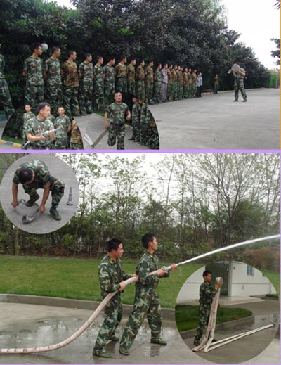 为了让每一位员工(特别是秩序维护队员)熟练掌握灭火器具的使用方法,紧急时刻能够“拎得起、喷得出、达效果”,蓝光嘉宝物业将2009年3月作为消防安全集训月,狠抓消防培训。