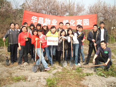 为积极响应成都市绿委办、成都市环保局的号召,打造绿色生态环境,共建“世界现代田园城市”,成都华昌物业发展有限责任公司团支部组织公司的部分优秀团员,参与由成都商报牵头举办的“成都市碳补偿植树”行动。2010年3月12日,来到成都市低碳补偿林基地——位于成都上游水源保护地的郫县红光镇徐堰葡萄园基地,履行公民的植树义务。