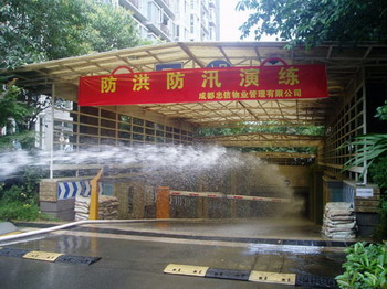 服务中心结合小区实际,首先在防洪防汛方面加大了宣传力度,同时对小区排水系统和大型乔木进行了全面清理、加固,针对防洪防汛工作制定了完善的《防洪防汛应急预案》、《防洪防汛演习方案》。