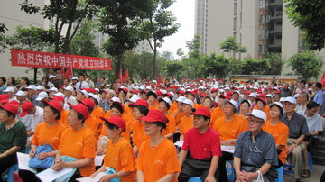 随后,由跳蹬河街道办、锦绣东方文协会和物业服务中心联合举办的文艺演出拉开帷幕。大家以多种形式演绎了众多经典红歌,表演了《今天是你的生日我的中国》、《一个妈妈的女儿》、《别了,大别山》等十几节目,服务中心的陈晓莹也代表忠信物业演唱了歌曲《红旗飘飘》,最后,台上台下的全体党员及业主共同合唱《没有共产党就没有新中国》。首首红歌激动人心,不时引发观众的阵阵掌声,歌声在小区飘荡,同时也飘扬在每个人心中。在文艺演出的同时,社区还组织开展了健康咨询进社区活动。当天晚上,服务中心又特别组织放映了电影《十月围城》,与全体业主共庆党的生日。