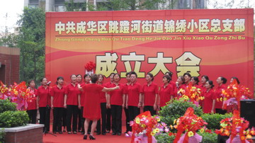 2011年7月1日建党90华诞之日,锦绣东方社区举行了隆重的系列庆祝活动。上午10时,“中共成华区跳蹬河街道锦绣小区总支部成立大会”揭牌仪式正式开始,成华区区委组织部周部长致辞,并与街道党工委副书记李冬辉一起为党总支成立揭牌。跳蹬河街道办党委书记李云、主任罗远江及相关领导宋宝利、李冬辉、王先峰,锦绣东方社区主任陈利金、副书记宋森等到会,社区近300个党员及众多业主一同参与了揭牌仪式。