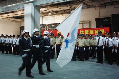 2011年7月29日下午3点半,伴随着雄壮的军乐曲,成都忠信物业2011年度秩序维护岗位练兵活动在大合仓项目拉开了帷幕。由成都各项目抽调精干人员组成的四个方队,迈着整齐的步伐进入场地。队员们个个气质昂扬、精神抖擞,正步走过主席台,向公司各级领导及来宾敬礼、汇报表演。公司及分公司领导、各项目负责人以及青海大通新宇物业管理公司的朋友们也一起观摩了汇报演练。