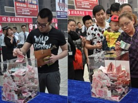 金荷花商家及各界人士共400余人积极响应,专程赶来的大商家、商铺营业员、身穿工作服满手污泥的商铺装修工人、身系围裙的荷花池小商贩、甚至蹒跚的智障青年,排着长队,奉献爱心。数万元、百元、十元、五元,现场工作人员一次次被感动落泪,我们代表灾区人民向他们致谢。