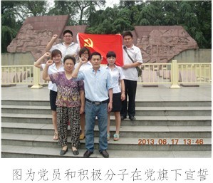 为了认真落实青羊区草堂街道党工委转发成都青羊区委《中共成都市青羊区委关于在全区广泛开展“实现伟大中国梦、建设美丽繁荣和谐四川”主题教育活动的实施意见》,科恒公司党支部于6月17日组织三名党员重温入党誓词,为这3名党员过了一次“党员活动日”,参加此次活动的还有四名积极分子。