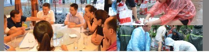 9:00,雨量减少,洪水开始退去,全员集合,游总将大家分成数个小组,分别负责积水业主房屋地下室清扫工作。