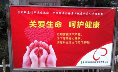 进入冬季以来面对成都漫天的灰黄雾霾,四川华玮物业管理有限公司镏金岁月项目组织开展雾霾天气业主关爱活动。于2014年1月6日早上7:30,由项目经理黄文丽带领工程部主管温元斌、秩序部主管黄小宁、客服部领班胡华英、保洁部领班李金蓉在小区前后门岗为小区广大业主发放多层防雾霾口罩。