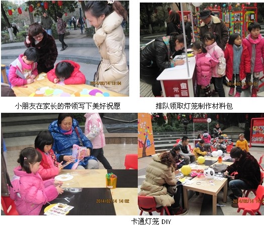 2014年2月14日既是传统的元宵佳节又是浪漫的情人节,在这样一个特殊的日子里,为增添节日气氛,让业主欢度佳节,在公司的精心策划和安排下组织了以“策马奔腾闹元宵·和谐邻里一家亲 ”为主题的元宵节游园活动。活动于元宵节当天下午14:00正式开始,共分为6个主题同步进行,有手工卡通灯笼制作、千钧一发、看图猜灯谜、超级保龄球、趣味垂钓等趣味性十足的活动,让小朋友和家人们在一个愉快的氛围中度过了美好的传统佳节。