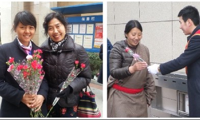 节日当天,物业工作人员将书写有“世界因为女性,显得分外美丽。合能物业祝您节日快乐!”字样的温馨卡片和娇艳的鲜花,送到了女业主手中,送去了真诚的祝福。“女神”们收到礼物,都为这份惊喜所感动,脸上洋溢着春风般的微笑。