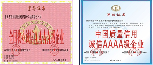 近日,2014年度由中国建设工程质量监督管理中心和四川住房与建设调查评审办公室组织的“中国房地产,物管示范企业”暨“全国房地产,物管诚信AAAA级企业”申报评定工作正式开展。金科物业成都分公司为提高企业知名度、提升企业品牌形象,信誉等级建设,使企业质量管理水平迈上一个新台阶,从而得到社会各界和消费者的公认,特参与到此次申报行列中。经过调查评审工作组对质量管理工作,资本实力及信用状况,开发规模和经济效益等进行逐项综合分析评定,并进行两级评审后,成都分公司被授予2014年度“中国质量信用诚信AAAA级企业”暨“全国物业诚信AAAA级企业”的殊荣。重庆市金科物业服务有限公司成都分公司将抓住此次契机,再接再厉,扎实工作,开拓创新,让金科品牌影响力和号召力持续得以提升,为企业持续发展而努力奋斗。