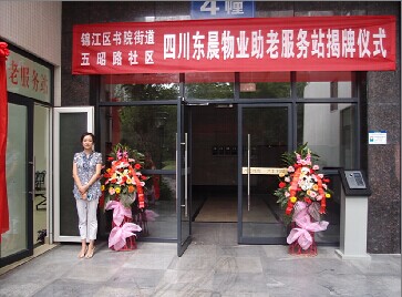 2014年6月30日上午10点,成都市锦江区东较场街道大王钰城小区彩旗飘扬,礼花四射,业主欢欣鼓舞庆祝小区助老服务站建成运营,锦江区房管局,书院街道办事处、五昭路社区领导为四川东晨物业公司助老服务站举行了隆重的揭牌仪式。