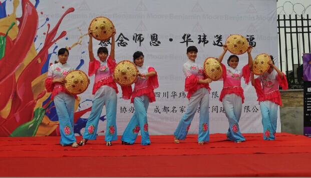 下午2:00,在一阵高昂激烈的音乐舞蹈中,在樟菊园小区广场举办的“感念师恩、华玮送祝福”歌舞盛会正式开始。活动现场,在阳光的照射下,“华玮物业恭祝全体业主节日快乐”的红色横幅耀眼醒目,展现公司风采的宣传展板整齐地竖立在来宾签到处,各种温馨浪漫的装饰点缀了整个现场。工作人员各司其职,井然有序的为前来的业主签到、送礼品、安排就座等。活动节目丰富多彩,有物业服务中心准备的优美的舞蹈表演,有来自业主的二胡独奏,有见证奇迹时刻的魔术表演,还有深情款款的诗歌朗诵等。给人留下最深印象的便是业主上台的现场绘画:在短短的几分钟里,3位上台来的业主分别画出了《美丽女人》、《生命之树》、《花好月圆》的绘画,画功深厚、主题深刻的作品让在场人员惊叹不已:“真不愧是高级知识分子,果然有两把刷子,一上台就能画出这样有意义的作品!” 节目之间还有互动小游戏,极大的调动了业主的参与积极性,现场气氛不断高涨。所有演职人员倾心表演,现场工作人员尽心服务,都只为了给所有老师带去最真挚的祝福。