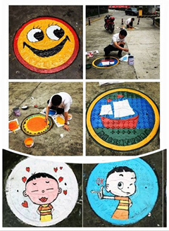在窨井盖上涂鸦作画,是项目员工的奇思妙想。每一幅作品都倾注了大家的创意和心血,既表现出物业人积极的生活态度和童真的生活乐趣,也反映出项目的服务质量、服务态度,同时还达到了预防井盖锈蚀、美化园区的作用。这份独具特色的画作,在炎炎夏日中无疑给人带来一股清新、一份温情。