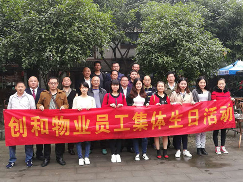 10月21日,成都市创和物业有限公司举办了下半年员工生日活动会。其中包括各物业服务中心项目经理、经理助理、主管、秩序维护队队长及综合部成员等共40余人参加了此次生日聚会。并荣幸邀请董事长文映忠先生担任嘉宾,共同为员工庆生。