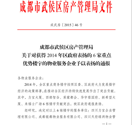 上一条:关于开展2015年度“走近十佳”优秀物业服务项目学习交流活动的补充通知 下一条:关于对成都明远物业发展有限公司等3家企业予以批评的通报