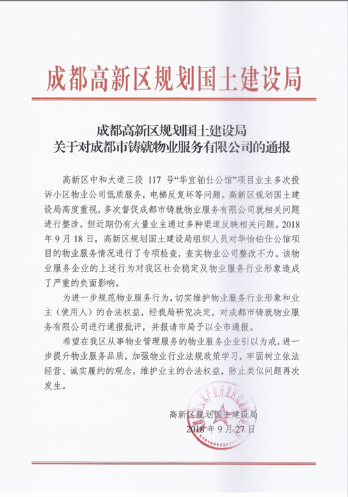上一条:2018年成都市星级住宅区创建活动评定结果公示 下一条:成都市邮政管理局 成都市城乡房产管理局关于促进物业管理区域邮政快递投递服务的意见
