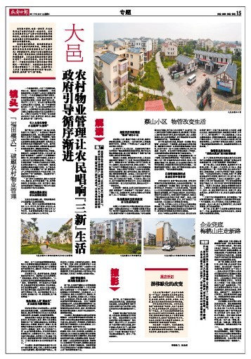 随着“福田模式”的试点成功,大邑县在越来越多的农村集中居住推广“福田模式”,引入了专业化的物业管理公司提供物业服务,让农民共享“物管文明”。