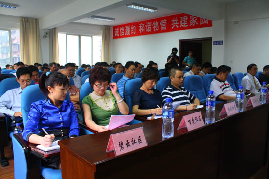 将物业管理纳入社区建设的重要内容,以构建和谐物管作为建设文明社区的重要抓手。9月18日上午,武侯区房管局、双楠街道办事处在双楠街办举办了“和谐物管论坛”,市房管局物管处、武侯区房管局、双楠街办相关负责人,和谐物管社会监督员,双楠辖区各社区居委会、物业服务企业负责人以及部分业主委员会代表齐聚一堂,就辖区内的和谐物管构建、推动物业管理的工作机制建立等问题进行了深入的讨论,同时还向全双楠辖区发出《开展“诚信履约、和谐物管、共建家园”倡议书》。