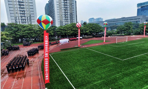 10月17日下午,由成都市物业管理协会主办的2015年成都市物业管理行业秩序维护技能竞赛暨物业管理“安全年”汇报演练活动在成都职业技术学院盛大举行。来自成都市物业管理行业的17支企业代表队和近千名物业服务人员参加了本次竞赛和汇报演练。成都市城乡房产管理局物业管理处副处长姜鲁东、调研员唐宗伟,成都市成华区房产管理局副调研员传光全受邀出席活动。成都市物业管理协会会长闻涛,副会长温文遐、陈干平、田永云、李轶梅、梁古芬、杜小云、曹毅、李立新,秘书长巫庆敏等领导出席活动。竞赛评委由唐宗伟调研员、传光全副调研员、温文遐副会长,以及特邀嘉宾四川时尚职业培训学校副校长宾冰,成都市公安局交通管理局第一分局警官赵亮华担任。