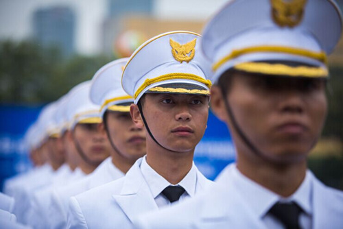 下午1点30分,运动场上彩旗飘展、十六支“安全年”活动空飘标语围绕在赛场周围,各参赛队伍在场上整齐列队。随着竞赛演练总指挥一声令下,活动的第一部分秩序维护技能竞赛拉开序幕,盛大而精彩的分列式正式开始,由700名秩序维护队员组成的16支方队沿着跑道依次行进。他们队列整齐、步伐有力、口号震天、英姿飒爽,充分展现出我市物业人昂扬向上的精神风貌,赢得在场观众阵阵掌声。