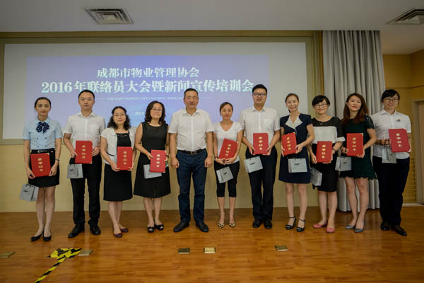9月2日下午,成都市物业管理协会在房产分中心三楼多功能会议室召开2016年联络员大会暨新闻宣传培训会,对30位获得2016年“优秀联络员”称号的同志进行了表彰,并开展了媒体公关、新闻写作和摄影培训。成都市城乡房产管理局物业管理处副处长姜鲁东、新闻宣传办公室主任胡建华应邀出席会议并讲话。协会会长闻涛、常务副会长兼秘书长巫庆敏出席会议,200余家会员单位的联络员参加了会议。会议由协会副秘书长苟强主持。