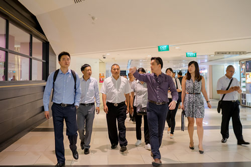 考察团一行重点考察了凯德集团及其建设和管理的新加坡来福士广场。作为亚洲最大的跨国房地产公司之一,凯德集团的房地产和服务式公寓业务遍布全球20多个国家110个城市。考察过程中,凯德集团宣传部长Joey Wong介绍了凯德集团的战略规划以及其在中国的布局与发展,重点解析了凯德集团在城市立体绿化建设和管理,既有建筑节能改造等方面的理念和做法。随后,在高级物业经理Paw以及租赁服务部经理Joyce的陪同下,考察团参观了新加坡来福士广场。这座建成于上世纪80年代的建筑,经过了多轮的更新和改造,持续保持经济价值和使用价值,在来福士广场物业管理同行的精心维护下,依然高效运作,充满活力。两地物业管理同行还就既有建筑改造的组织实施,互联网技术手段在物业管理中的运用,以及楼宇消防安全和电梯维保等问题进行了深入探讨和交流。