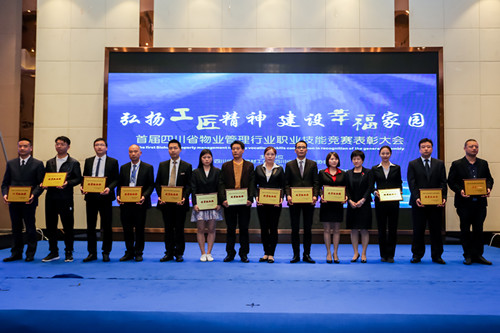 4月21日,首届四川省物业管理行业职业技能竞赛表彰大会在成都召开。四川省住房和城乡建设厅房地产市场监管处处长程刚,成都市城乡房产管理局物业管理处处长袁庆华受邀出席会议。四川省房地产业协会专职副会长郑友才,物业管理专业委员会主任姚敏;成都市物业管理协会会长闻涛,常务副会长兼秘书长巫庆敏,副会长陈勇、李轶梅、吴华,常务副秘书长苟强、副秘书长张富英出席会议。竞赛获奖单位和选手,以及参赛单位代表200余人参加了会议。