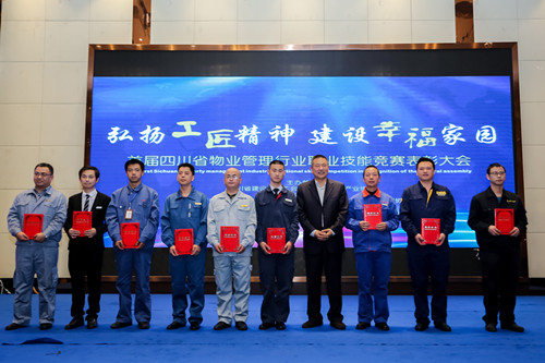 四川省房地产业协会物业管理专业委员会副主任、成都市物业管理协会副会长陈勇为“技术能手”获奖选手颁奖
