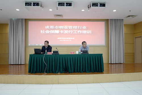 4月27日上午,成都市物业管理协会在房产分中心三楼多功能会议厅举办社会保障卡发行工作培训。此次培训得到了市人社局的大力支持和指导,市人社局信息处邹平处长、信息中心(卡务中心)谭明波科长到会就社会保障相关政策、社会保障卡发行工作进行了培训,并对物业管理行业共同关注的劳动就业、社会保障、人才服务等热点问题进行了讲解。近200名物业服务企业代表参加培训。