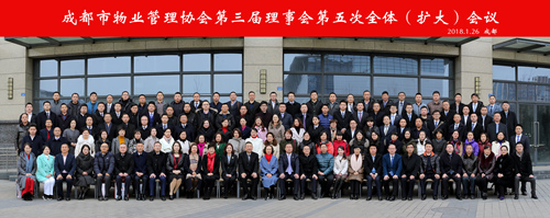 1月26日下午,成都市物业管理协会第三届理事会第五次全体(扩大)会议隆重召开。成都市城乡房产管理局物业管理处处长袁庆华到会指导并讲话。市物业管理协会闻涛会长、监事会周琳主席、常务副会长巫庆敏、副会长庞琳等出席会议,分别作了协会2017年度工作报告、监事会2017年工作报告、协会2017年度财务报告,并提交《关于增补理事和常务理事的议案》、《关于撤销分会的议案》供大会审议。协会理事和部分会员代表180余人参加了会议,监事会监事列席会议,会议由常务副会长兼秘书长巫庆敏主持。